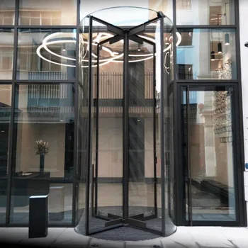 • Modern Waterproof Fiberglass Frameless Automatic Rotating Revolving Door with 10mm Tempered Glass CE Certified Solutions